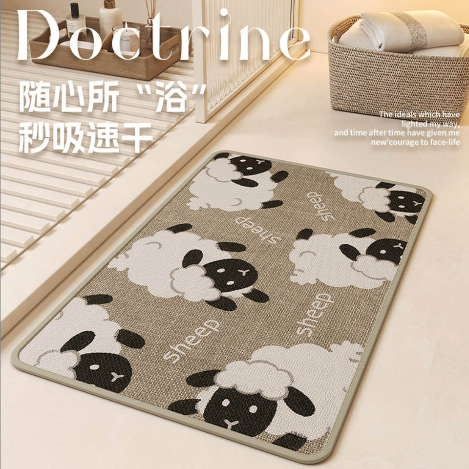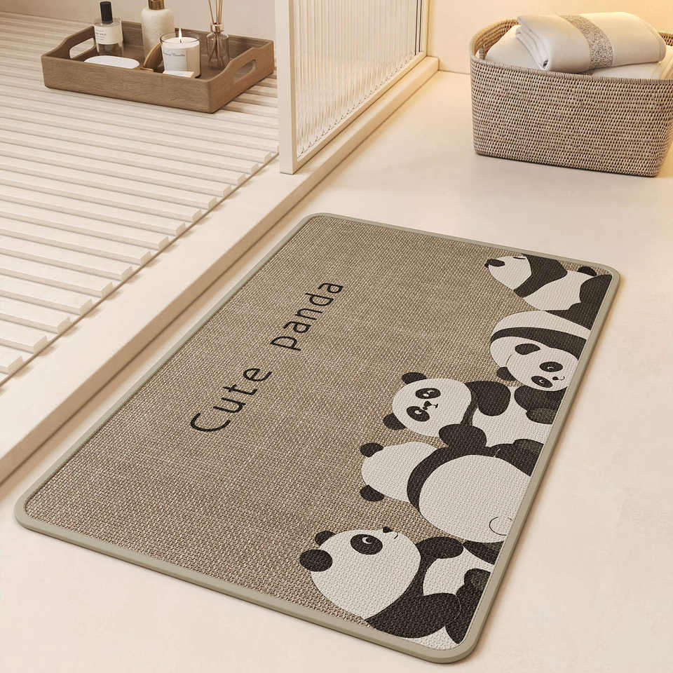 Tapis de salle de bain rectangulaire absorbant et antidérapant en forme de panda mignon pour salles de bain