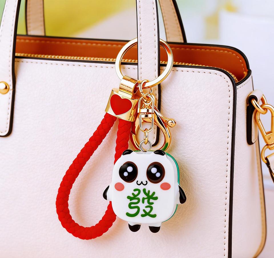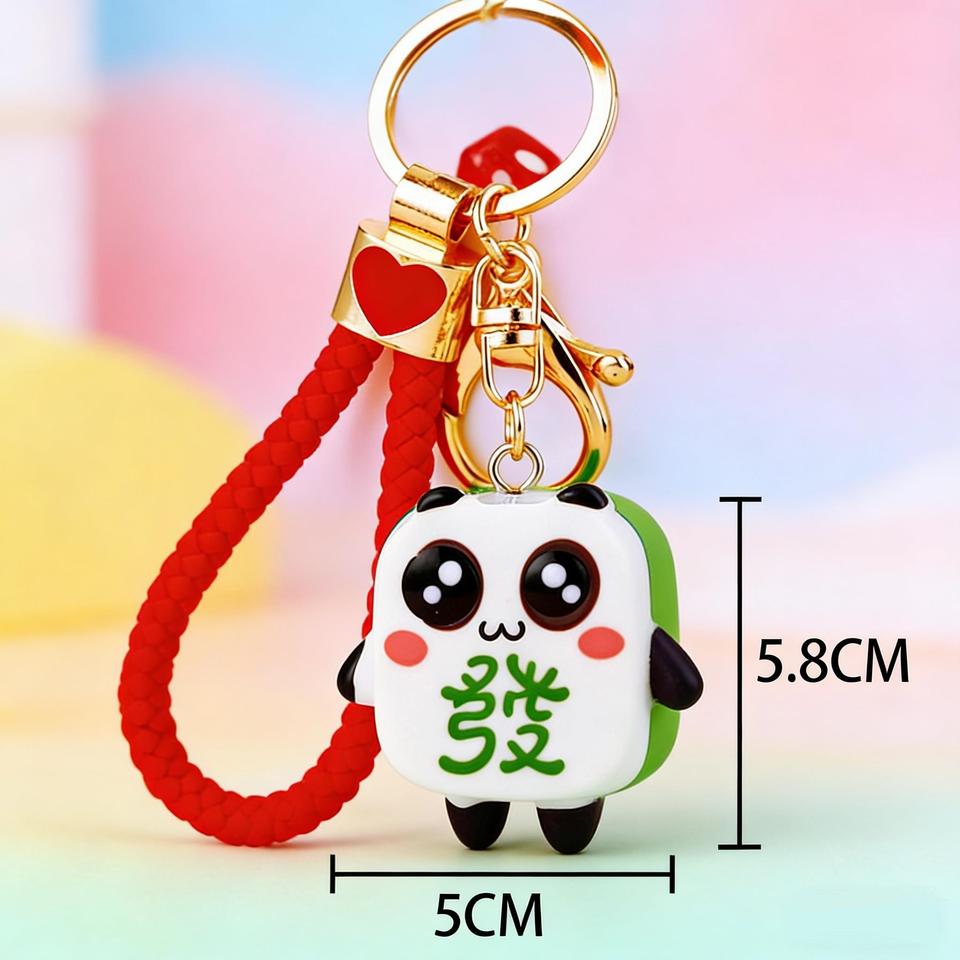 Porte-clés en alliage de zinc et résine, motif Mahjong Panda mignon, pendentif tuile de richesse, porte-bonheur pour voiture et accessoire pour sac d'école pour femmes, cadeau en gros