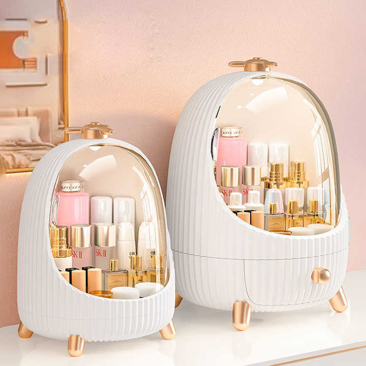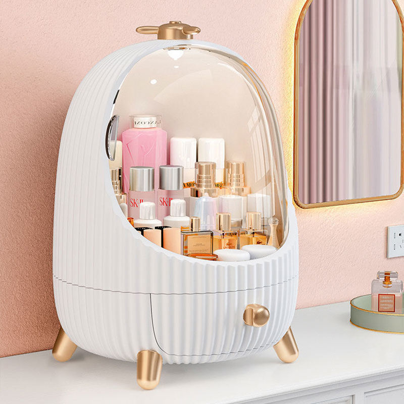 Boîte de rangement cosmétique en plastique PP anti-poussière avec lumière LED en forme de pingouin mignon pour tiroir de salle de bain