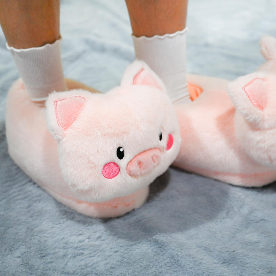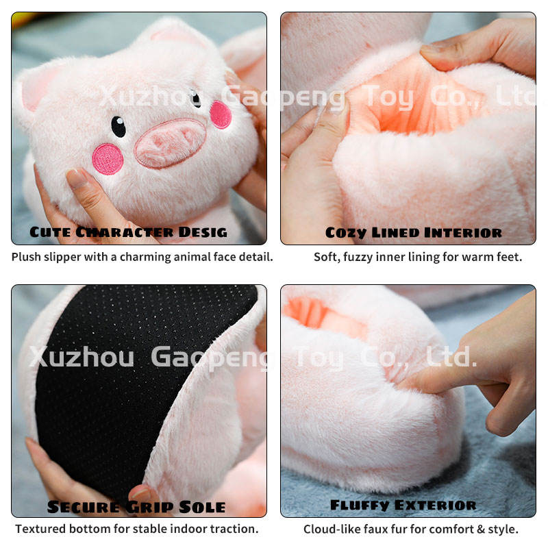 Mignons chaussons d'intérieur en forme de cochon de dessin animé avec semelle antidérapante, chaussons d'hiver chauds et moelleux personnalisés pour femmes