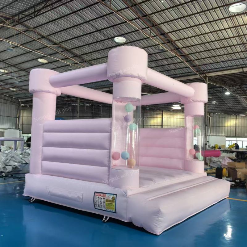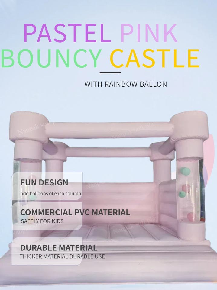 Château gonflable rose et blanc en PVC pour enfants, idéal pour les fêtes, événements, location de châteaux gonflables, maison de rebond pour enfants à louer