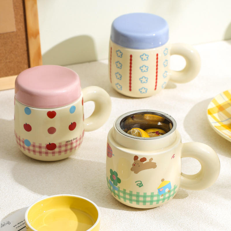 Mug à thé en porcelaine mignon avec infuseur et couvercle, tasse à thé en céramique