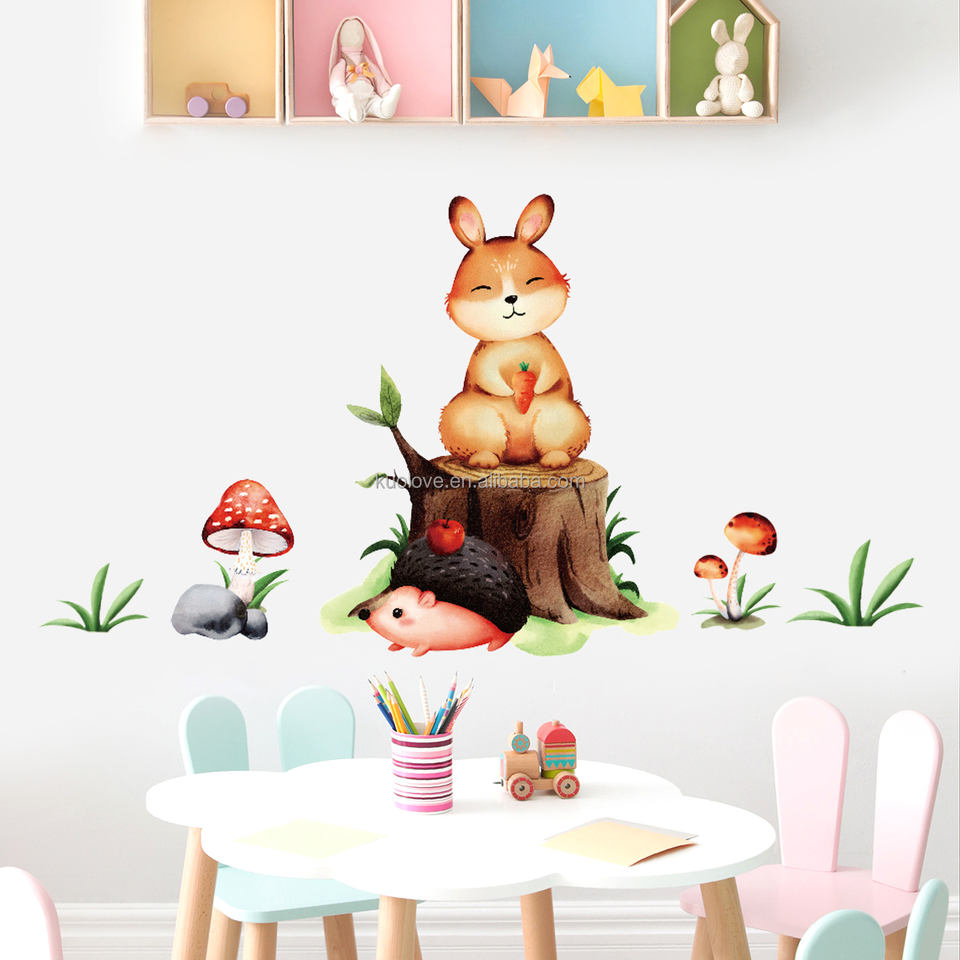Mignon Lapin Hérisson Stickers Muraux Chambre Salon Papier Peint Décoratif Autocollant PVC Stickers Muraux