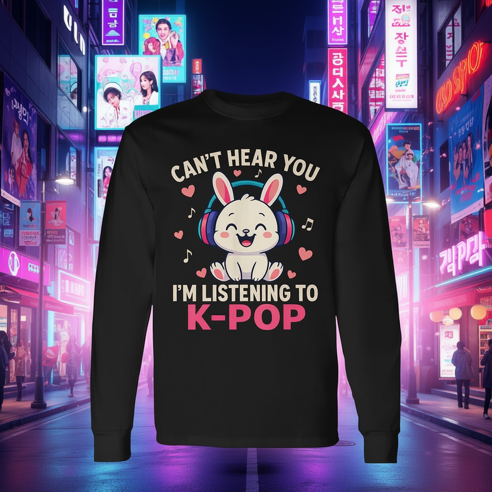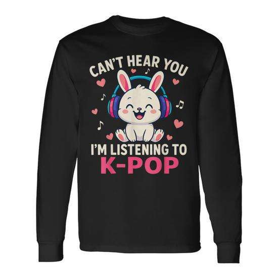 T-shirt à manches longues K-Pop avec motif lapin mignon, design Kawaii pour les amoureux de la musique, col rond unisexe, impression numérique, promotionnel pour adultes