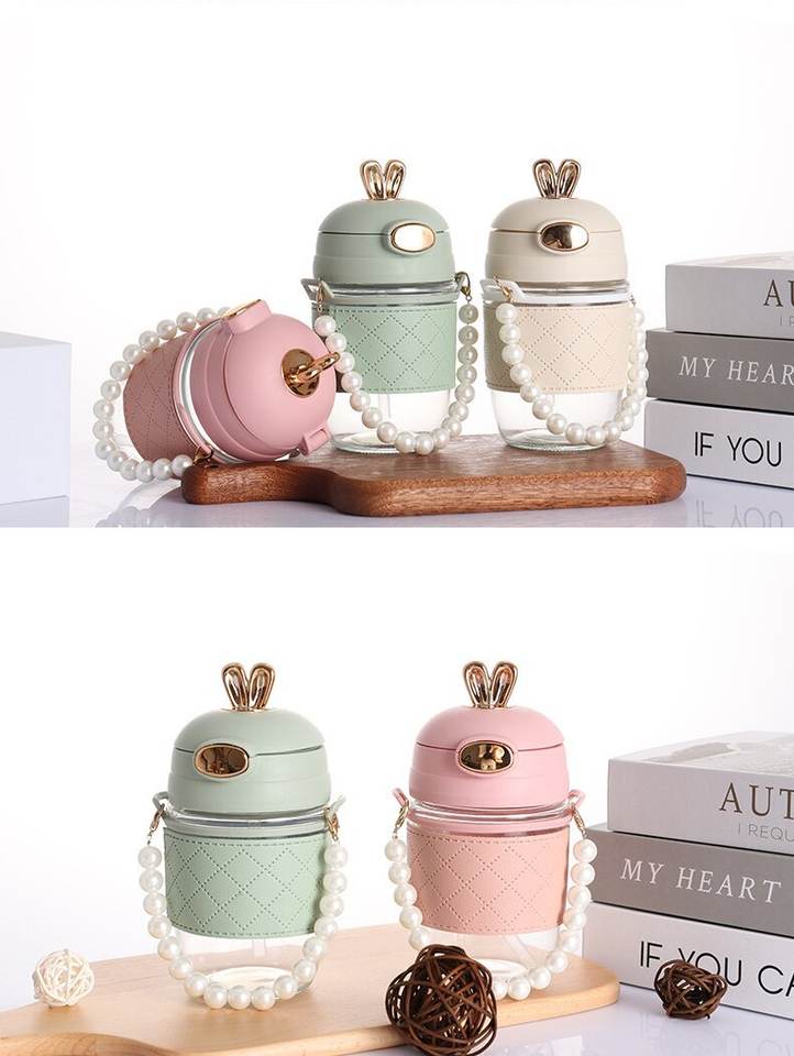 Product name:Pearl rabbit ear cup with straw