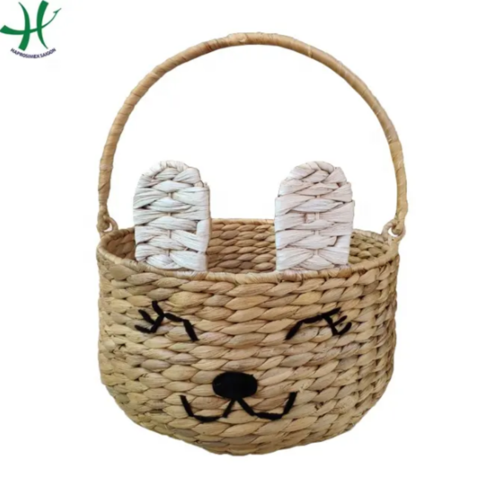 Panier à linge en jacinthe d'eau en relief de lapin mignon avec poignée pour enfants panier de fruits de stockage et d'organisation à la maison