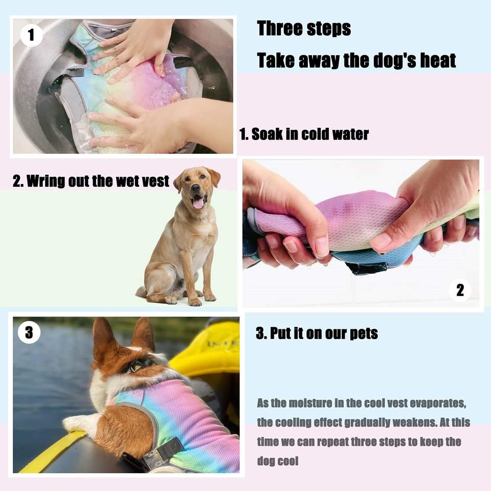 Gilet de formation pour chien arc-en-ciel mignon gilet de refroidissement par évaporation d'eau réglable pour temps chaud, gilet de refroidissement pour chien