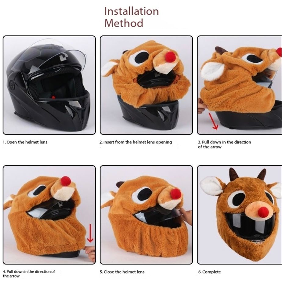 Housse de casque de moto renne mignon en fausse fourrure de lapin douce, ajustement universel pour casques intégraux, coupe-vent, anti-rayures, cadeau festif