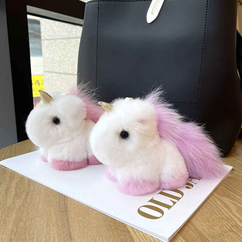 Mignon Rex lapin fourrure licorne pendentif lumière porte-clés doux en peluche poupée et petit cheval blanc sac pendentif pour les enfants