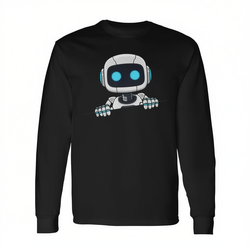 T-shirt à manches longues avec visage de robot mignon pour enfants, design de robot IA, noir