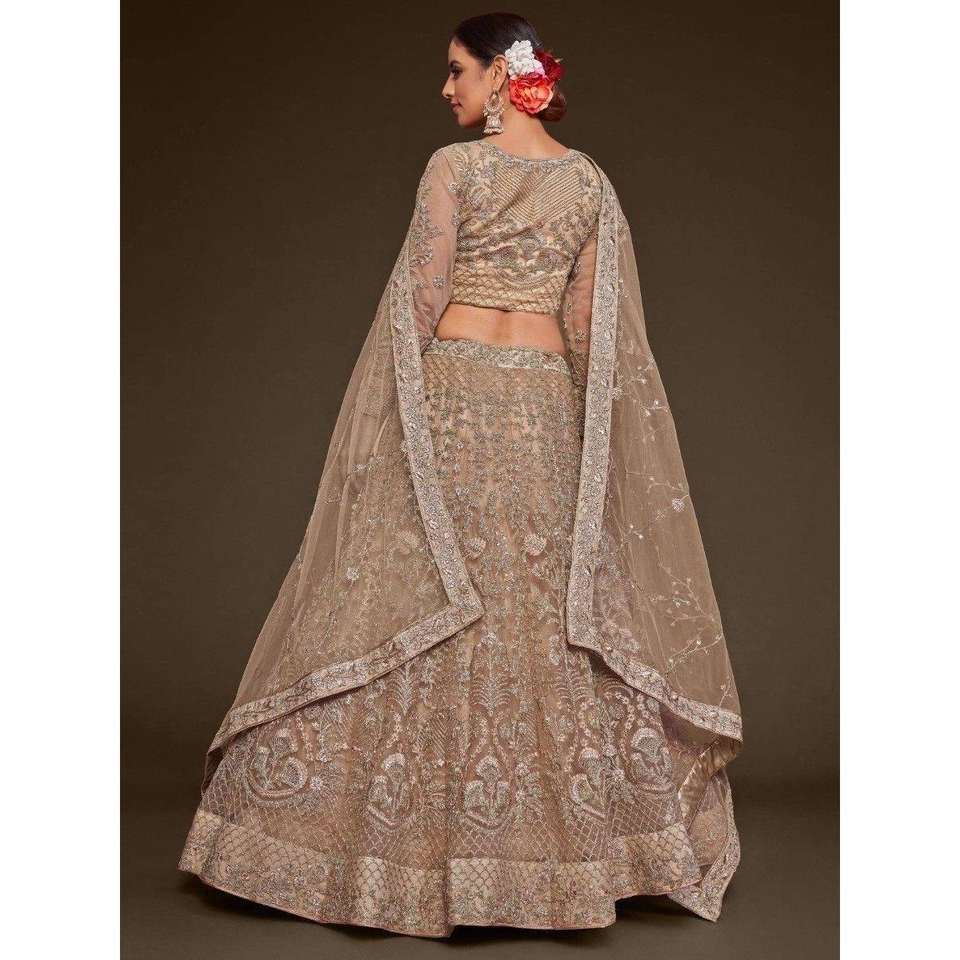 Jolie tenue de fiançailles en filet doux brodé beige royal Lehenga Choli