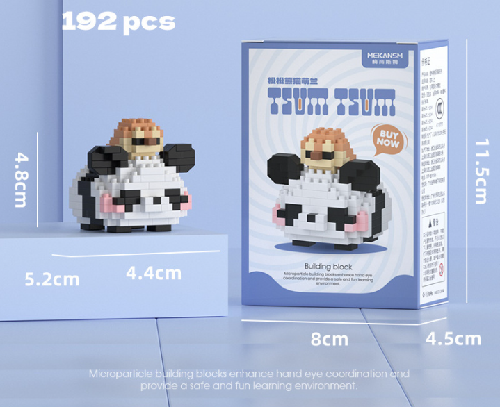 Micro blocs de construction Panda à scooter mignon - 172 pièces Mini briques Jouet pour un assemblage amusant en DIY et une décoration charmante