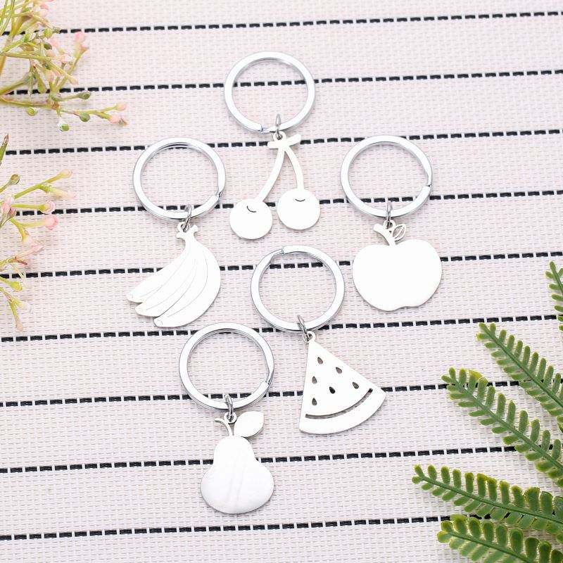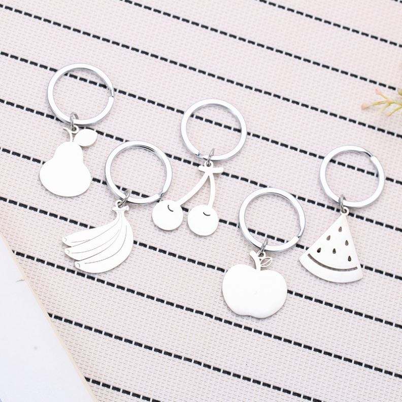 Mignon Simple Fruit En Acier Inoxydable Porte-clés Étudiant Sac Pendentif Creative Accessoires Gratuit Enfants Cadeau Bestie