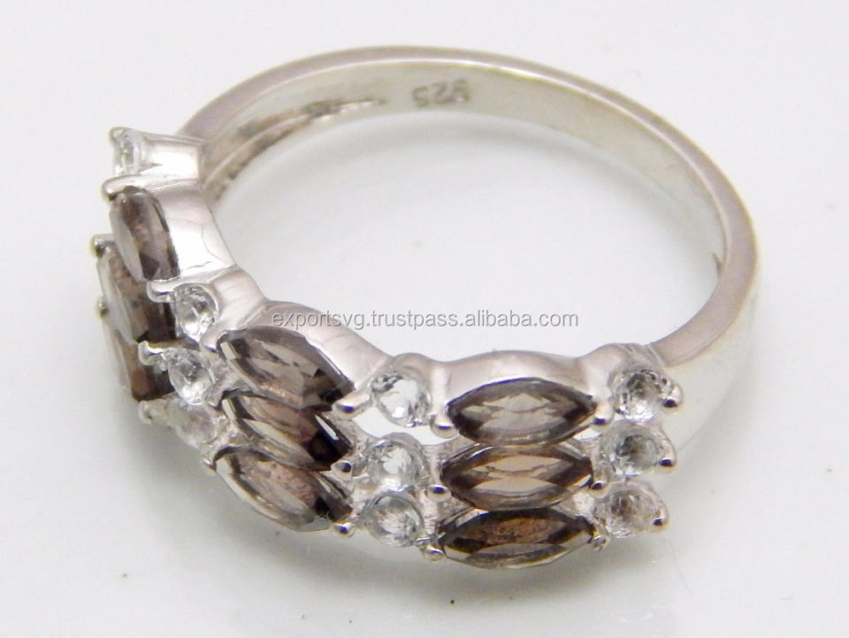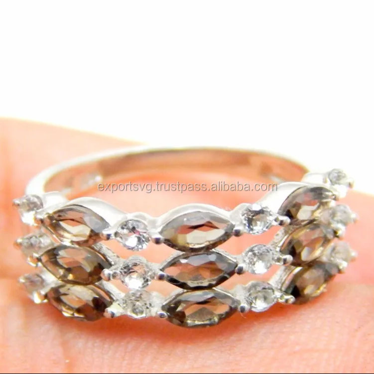 Mignon Quartz fumé pierres précieuses 925 argent Sterling classique bague de mariage bijoux de mode pour les femmes