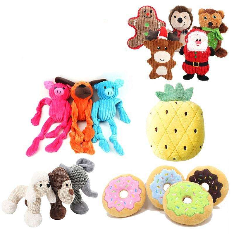 Jouets à mâcher pour chiens mignons, doux, écologiques, en peluche, avec des sons, durables, en forme de pieuvre, de beignets, d'hérissons, de légumes