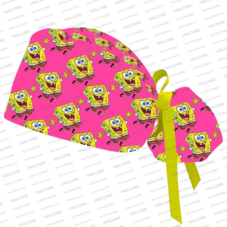 Queue de cheval d'allaitement imprimée avec motif de bob éponge mignon avec des casquettes de gommage en ruban Chapeaux chirurgicaux Infirmières et travailleurs de la santé par vaslcare