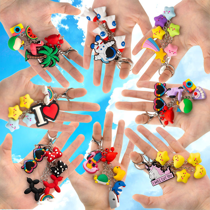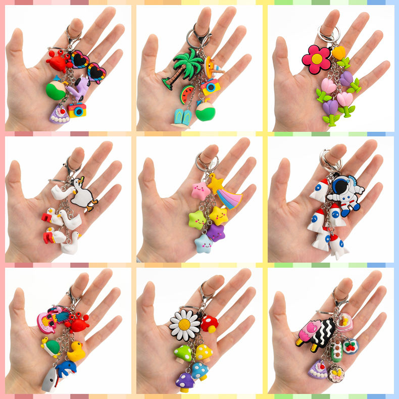 Porte-clés en caoutchouc mignon en forme d'étoile, accessoires multi-breloques colorés, thème plage, été, anime, étanche, alien, pour usage quotidien, cadeau pour amis et famille