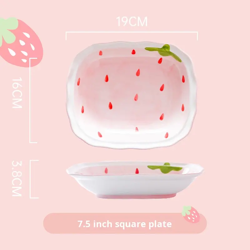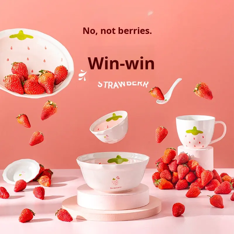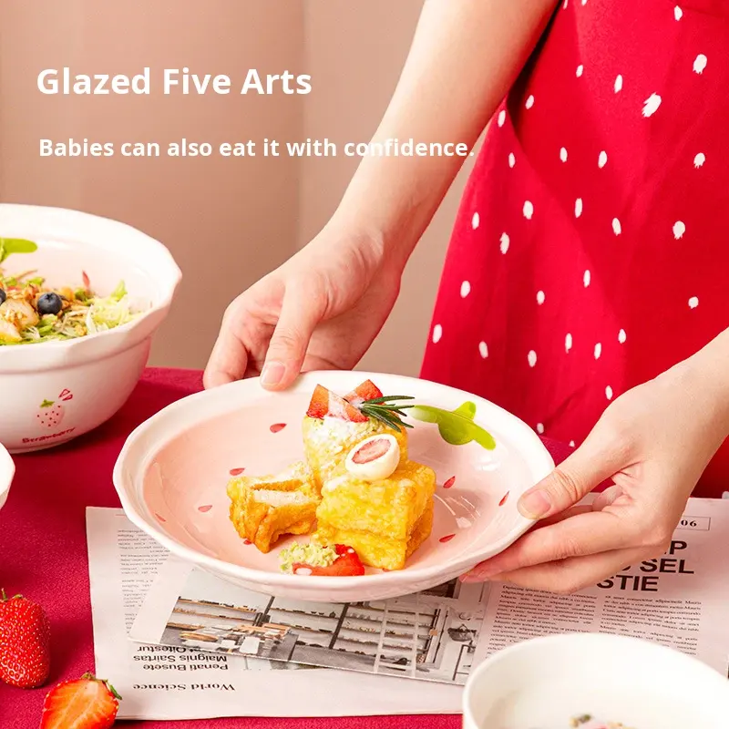 Ensemble de vaisselle en céramique européenne mignon à la fraise avec bol et assiette de haute qualité, ensemble de vaisselle en céramique circulaire nordique