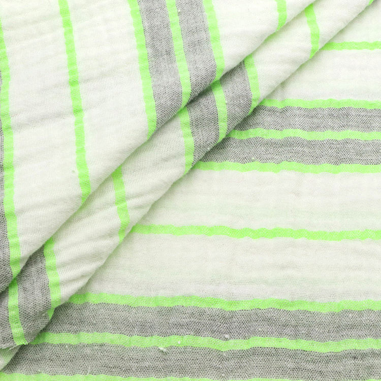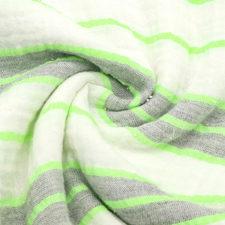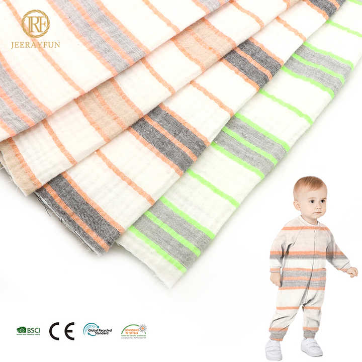 Tissu de coton en mousseline de gaze double couche teint en fil de crêpe froissé à motif rayé mignon pour bébé pyjama