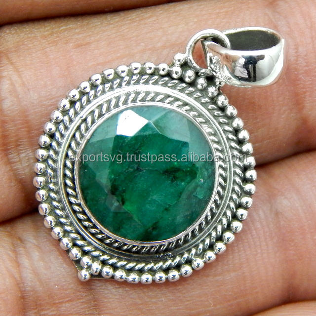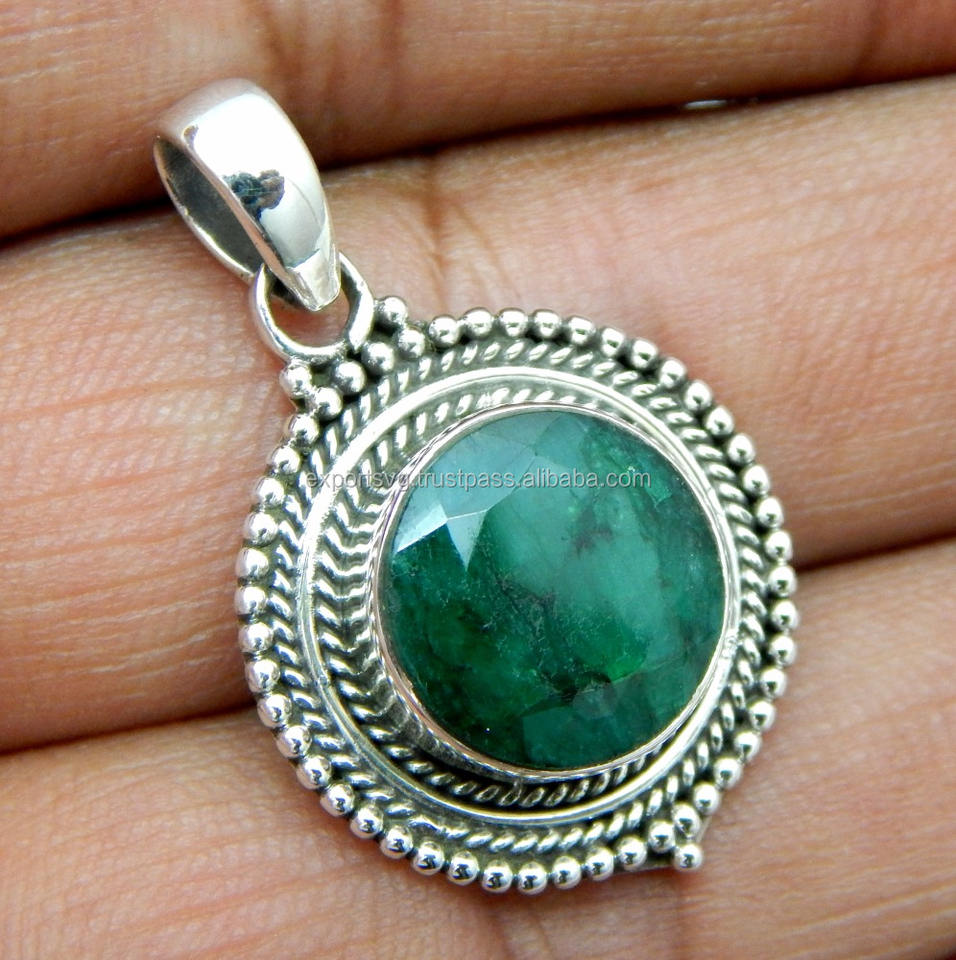 Pendentif en pierre précieuse émeraude en argent sterling 925 de style mignon bijoux à la mode pour les filles