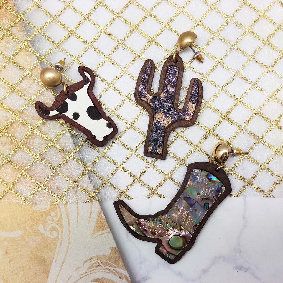 Nom du produit:Style mignon Boucles d'oreilles mode forme populaire de Cactus vache et bottes