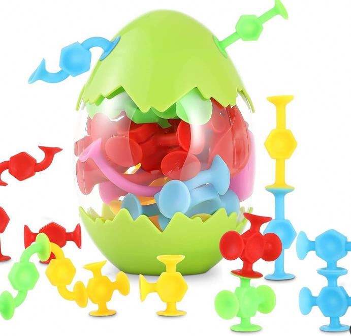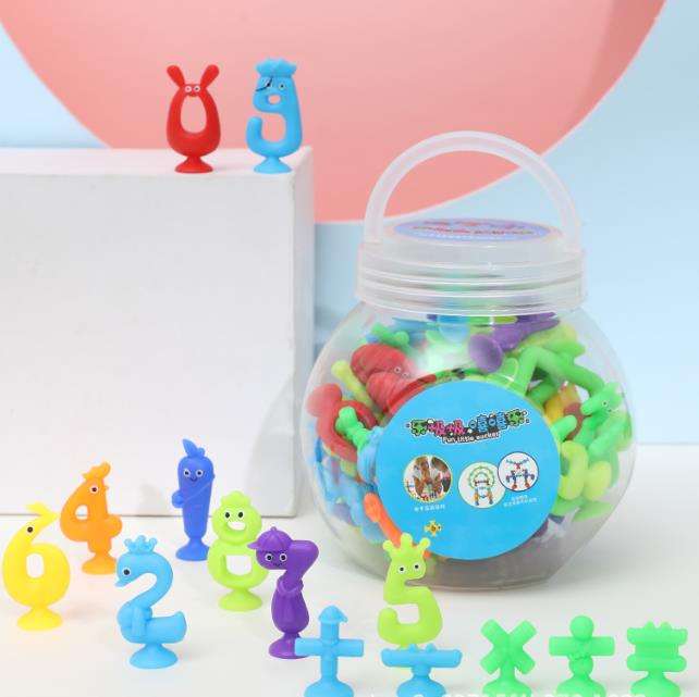 Jouet de construction à ventouse mignon compatible avec le kit de construction en capsules, blocs de construction animaux en silicone