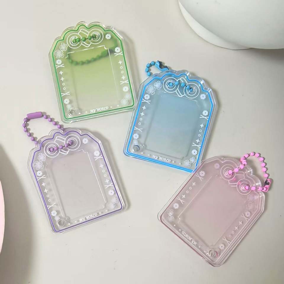 Porte-clés transparent en acrylique mignon, étui de protection pour cartes photo et cartes de crédit, support décoratif pour photocartes d'idols, objet de collection