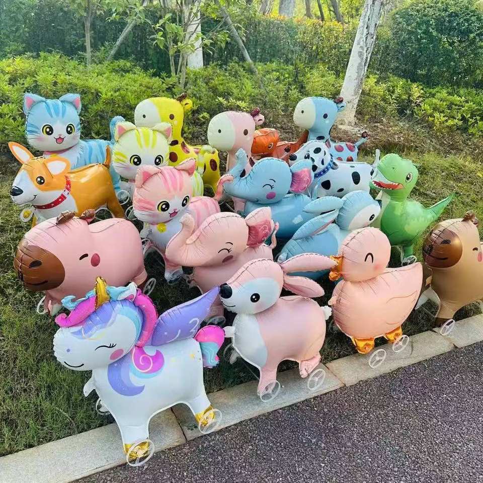 name:Cute Walking Animal Foil Balloons with Wheel Walking on Wheels