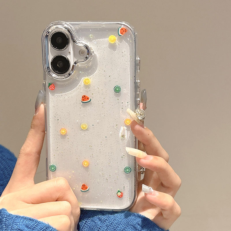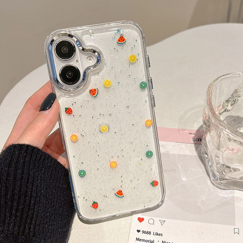 Cute Watermelon Lemon Strawberry Bling Glitter Case for iPhone 16 Pro Max 15 13 14 12 11 Clear Soft TPU Phone Back Cover