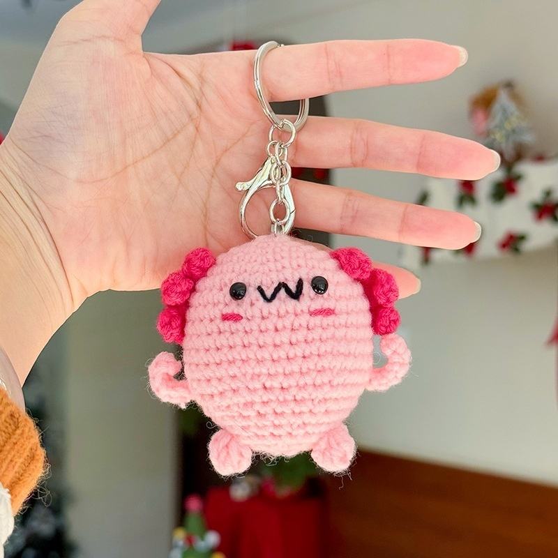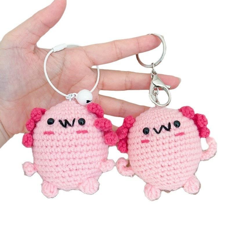 Mignon porte-clés en peluche amigurumi en forme d'axolotl, animal en laine crochetée, dinosaure hexagonal, axolotl en peluche