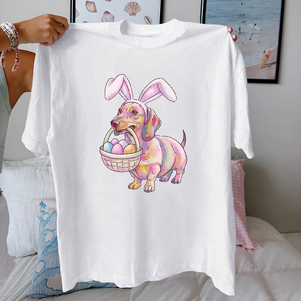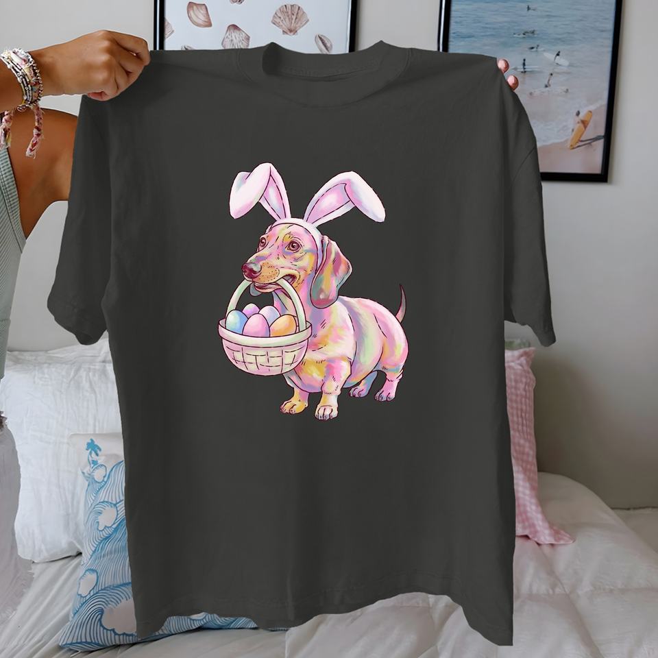 Cute dachshund with Easter eggs pure cotton women's Tshirt comfort fit
