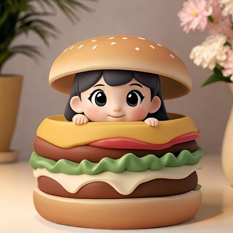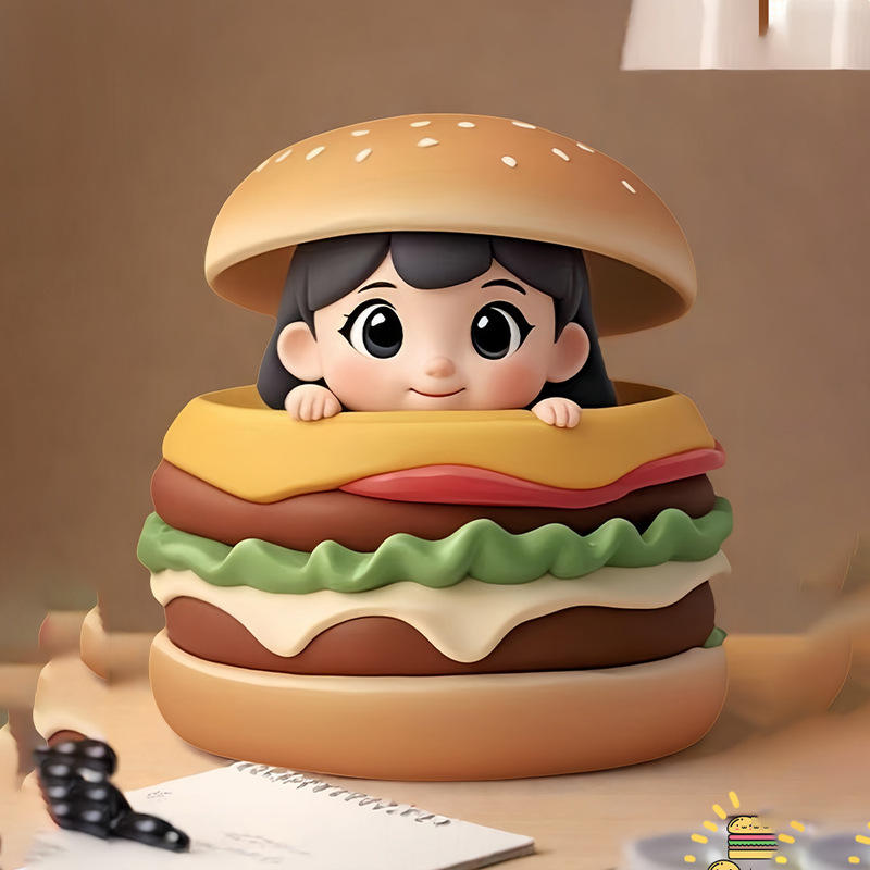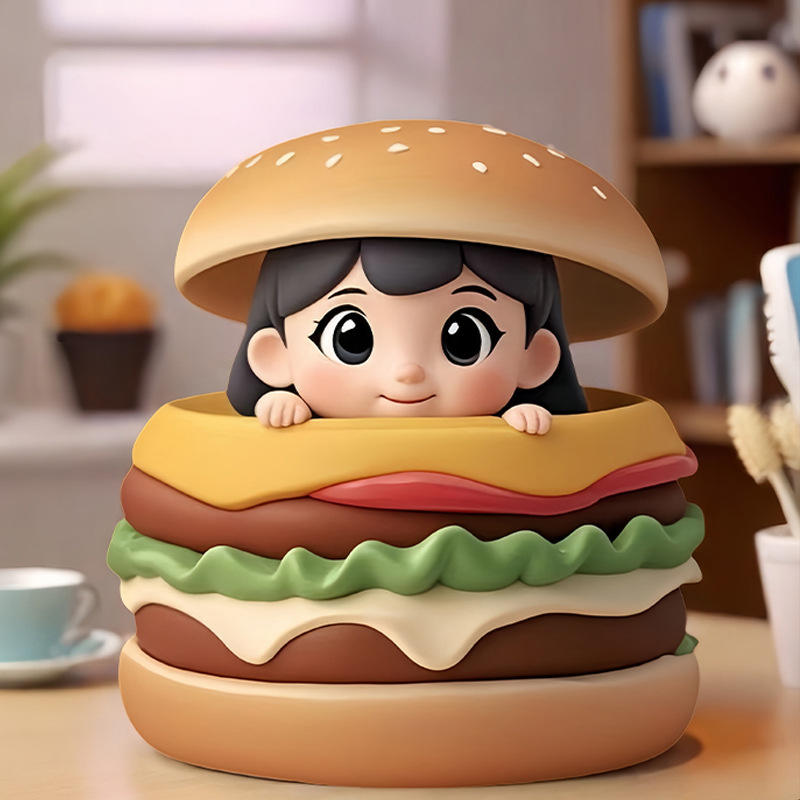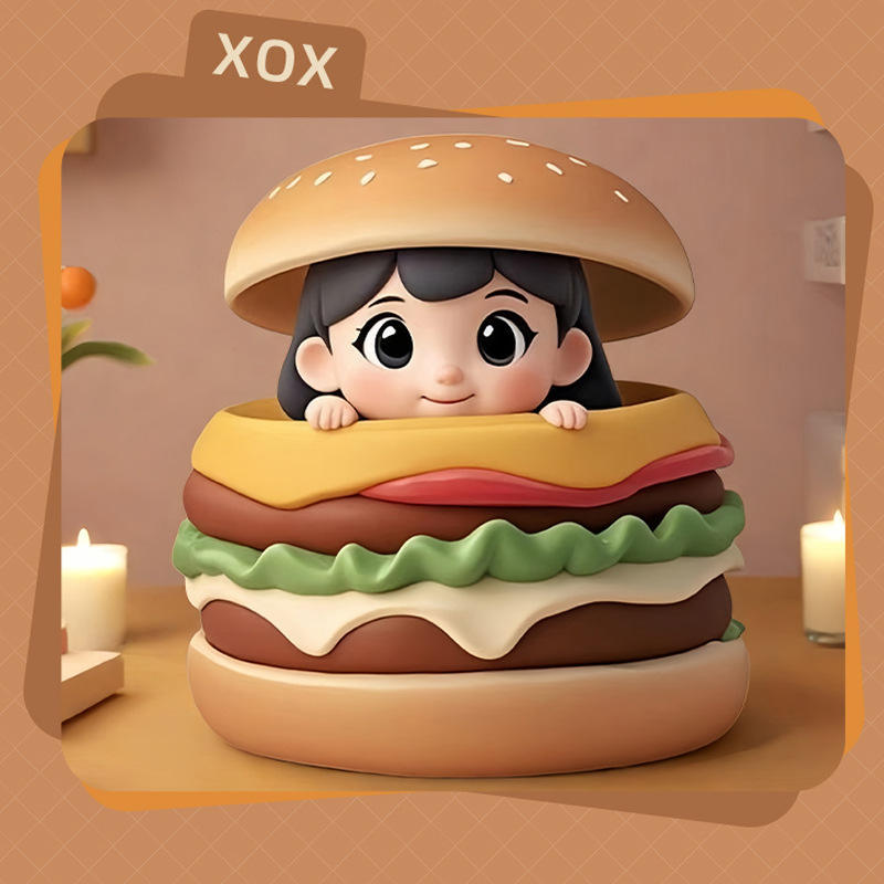 Cute Folk Art Peek-A-Boo Burger-Shaped Epoxy Resin Artistic Sculpted Figurine Children's Creative Birthday Gift for Girls Boys
