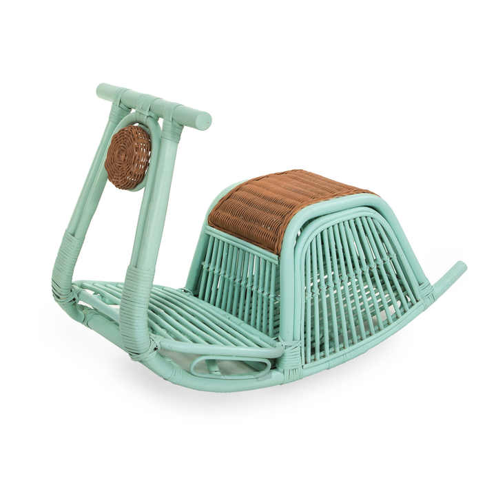 Cute rattan rocking scooter for children new design mint color ride-on cars handcrafted by Vietnamese artisans