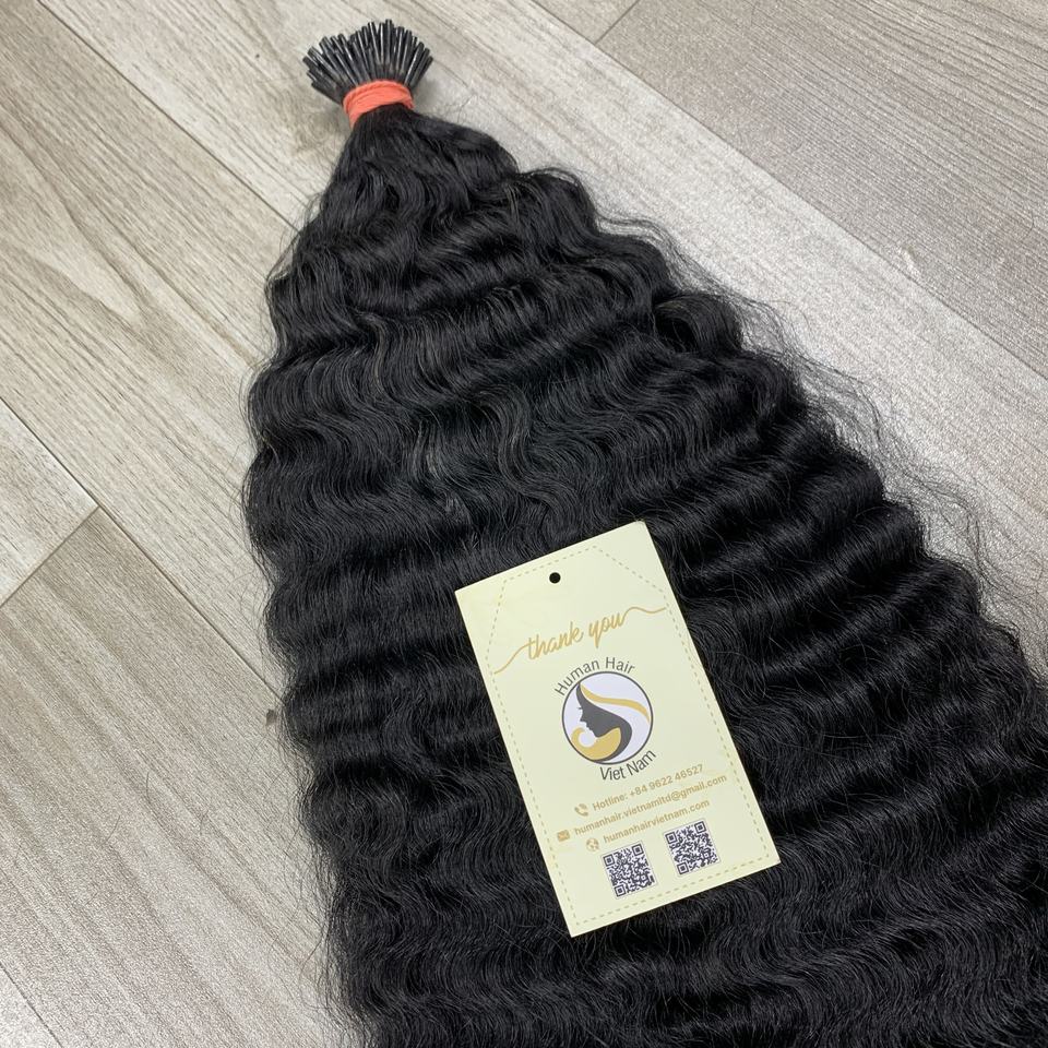 Meilleure Qualité à Alignement des Cuticules Vente Chaude de Kératine Bouclée Birmane I pointe Extensions de Cheveux Humains d'usine