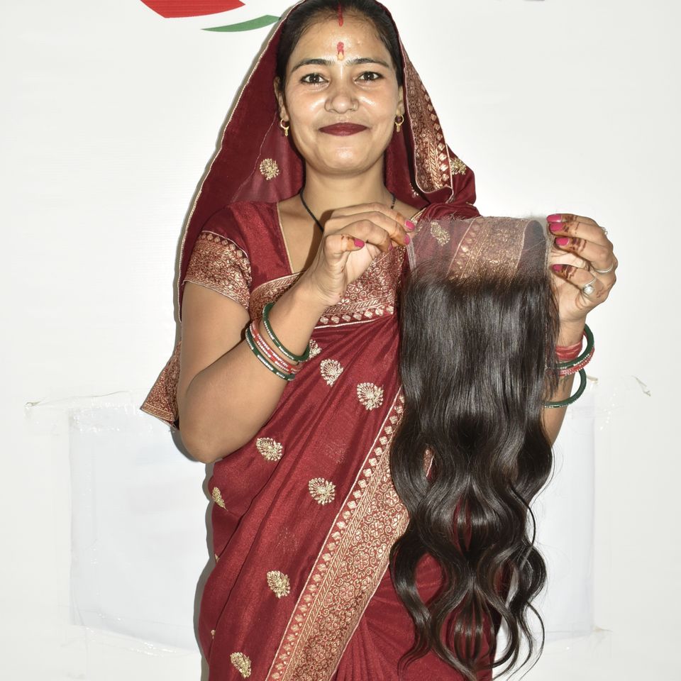 Cheveux humains vierges à cuticules alignées, double trame machine, lots indiens Temple, style ondulation naturelle, closure HD en dentelle, ondulation Bodywave