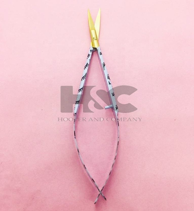 Nouveau Style Manucure Cuticules Ciseaux À Ongles Pointe D'or En Acier Inoxydable Sharp Conception Incurvée Logo Emballage-pour L'impression Des Cils Durable