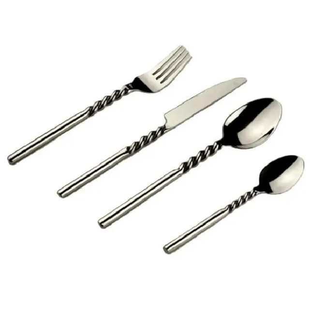 Ensemble de couverts avec boîte 304 acier inoxydable mat couleur argent Logo hôtel de luxe mariage vente chaude bas quantité minimale de commande ensemble de couverts