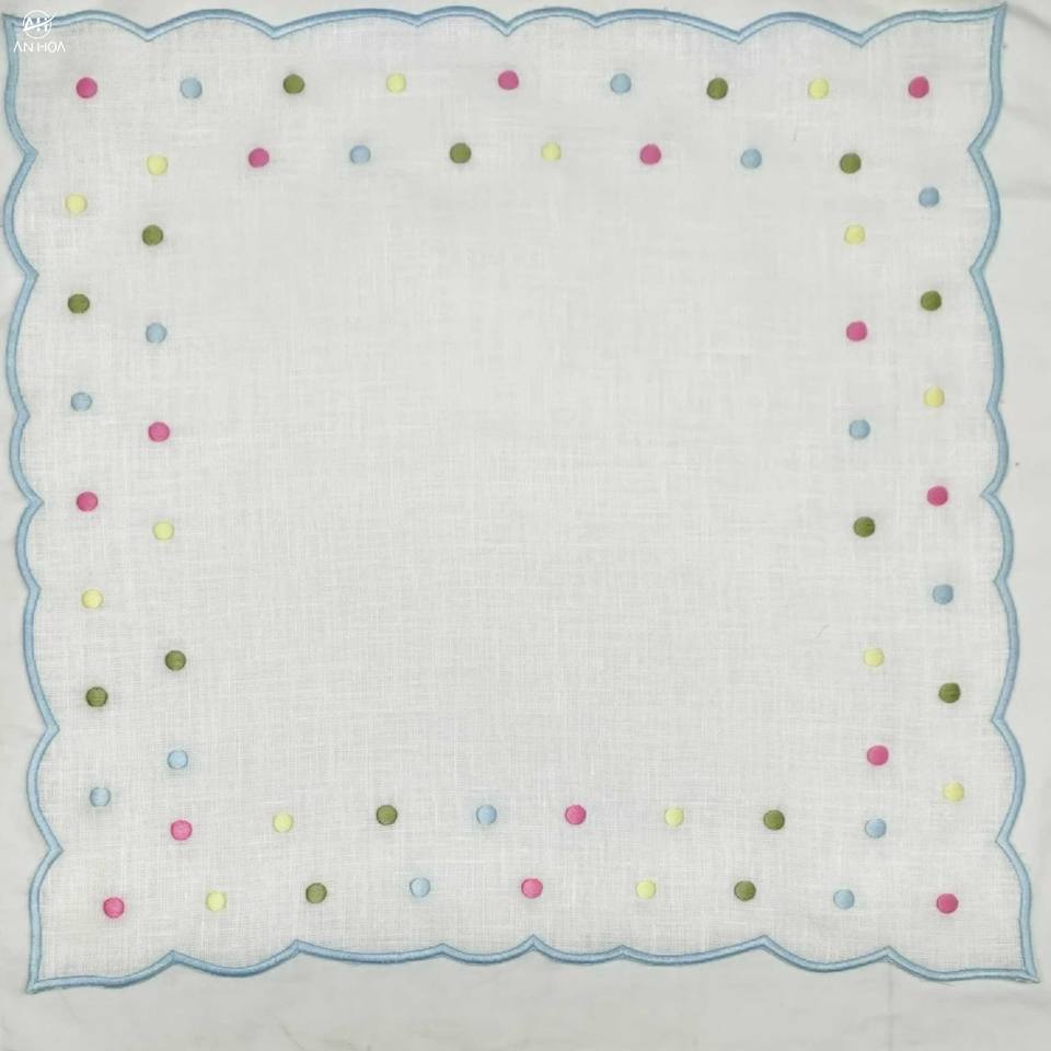 Serviette de table en lin carrée 100%, serviette brodée de points colorés, pour table en lin