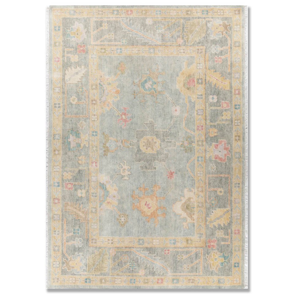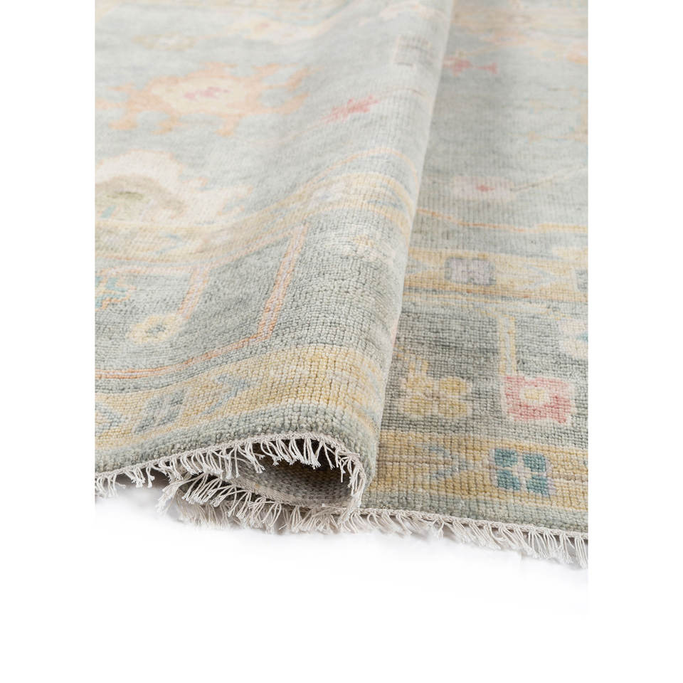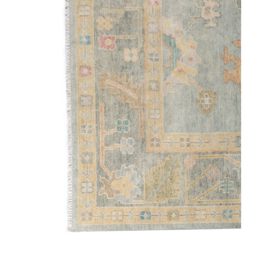 Tapis en laine noué à la main Cyanna Blue 9x12 rectangulaire, motif médaillon abstrait, idéal pour couloir, entrée, chambre à coucher Pkwl-977