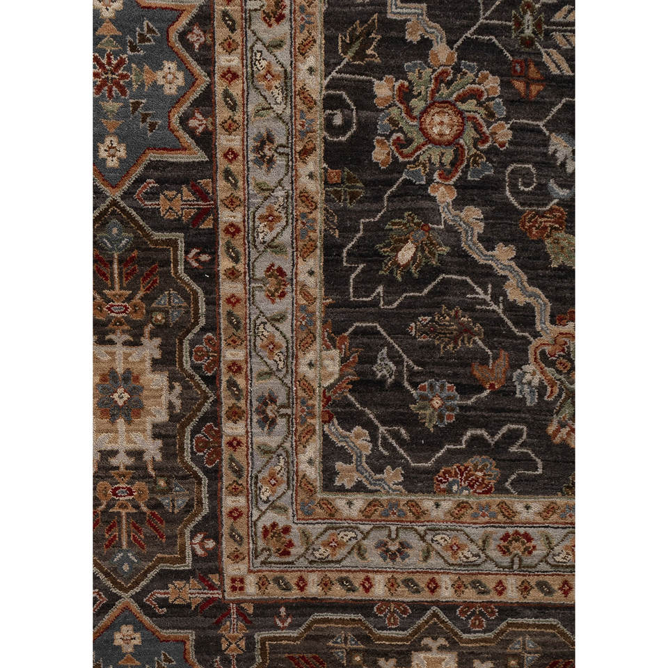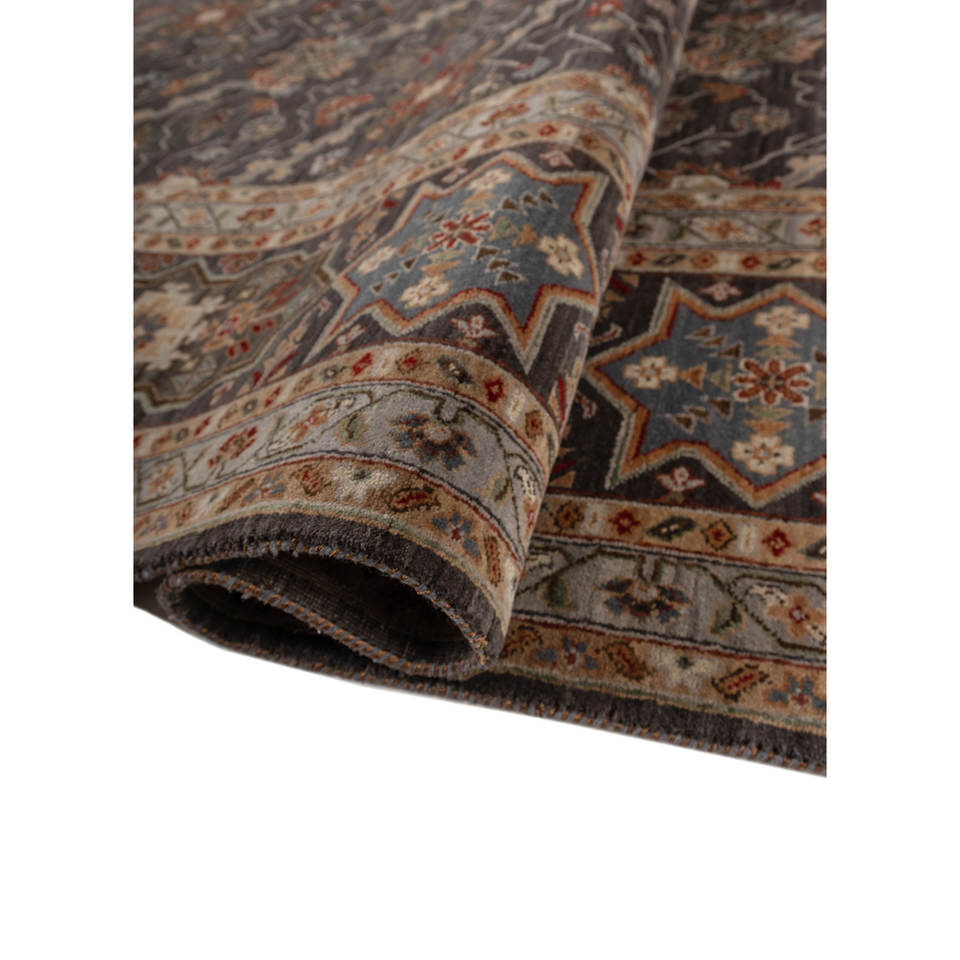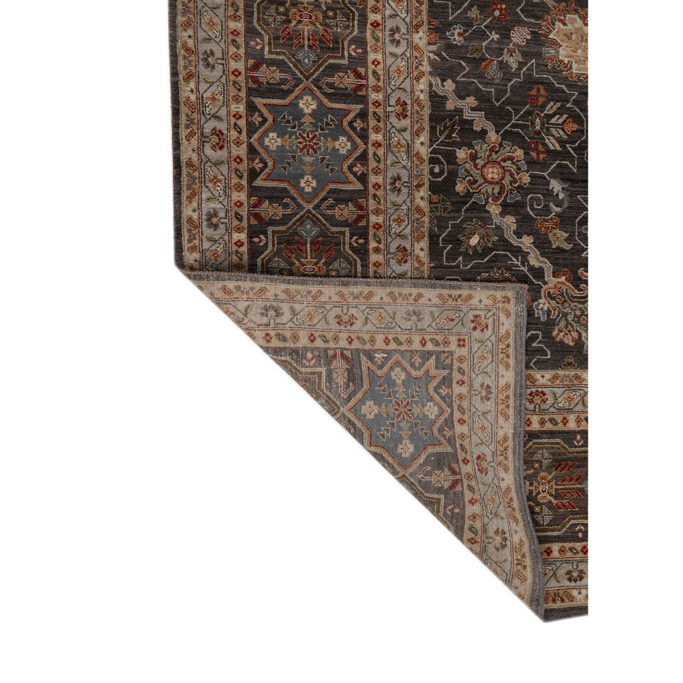Tapis en laine noué à la main Cyanna, gris et noir, style bohème, motif médaillon, rectangulaire, pour couloir, salon, maison - SPR-46(Fr)(Va)