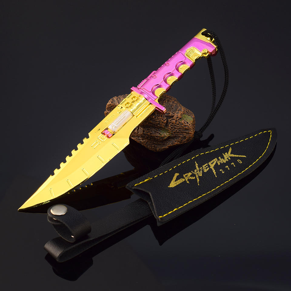 Cyberpunk 2077 Game Knife Metal Toy Sword Ninja with Dagger Simulation Camping Outdoor Survival Knife Powder Gold Cool Toy Knife