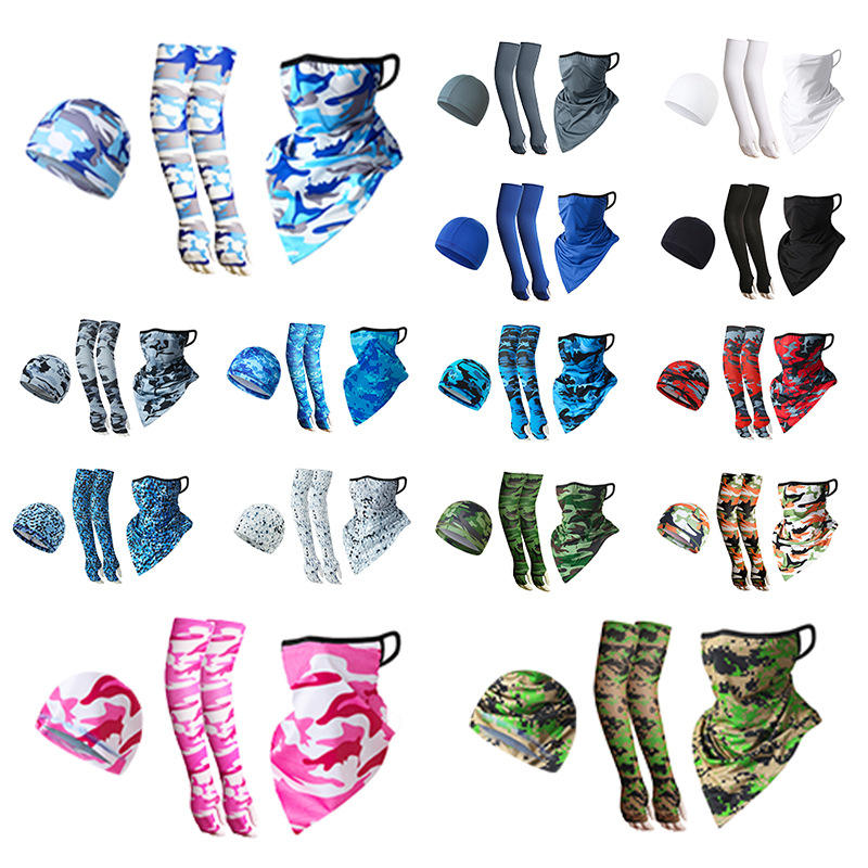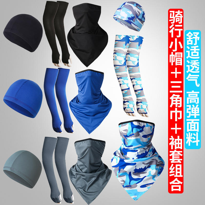Cycling Sun Protection Set Ice Silk Sleeves Triangular Scarf Small Cap High Elasticity Breathable Quick Dry Outdoor Gear