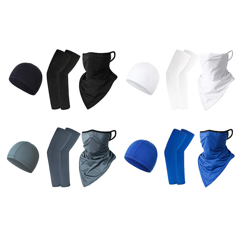 Cycling Sun Protection Set With Scarf Arm Sleeves And Cap Anti Uv Breathable Quick Dry For Outdoor Sports Unisex Adult