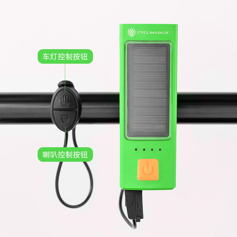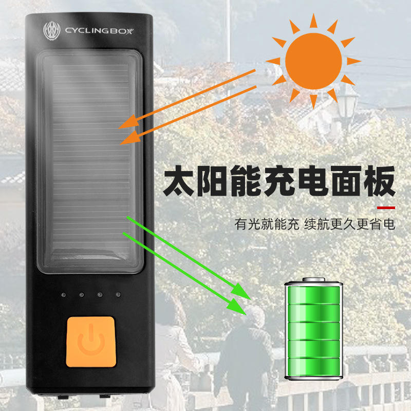 Cyclingbox – phare Led solaire pour vélo, Rechargeable, avec klaxon, 4 modes, étanche Ip4, pour la conduite en VTT