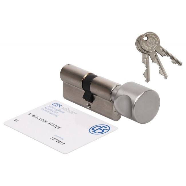 Cylindre CES PSM 35K/45 avec bouton, nickel, certifié classe 6.D, 3 clés dentelées