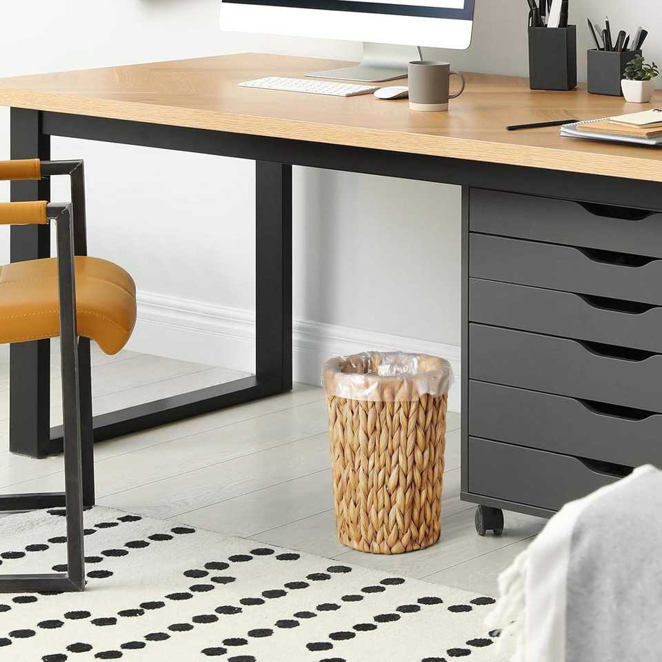 Poubelle cylindrique en osier tressé, petite corbeille de rangement pour chambre à coucher, en jacinthe d'eau, style bohème, pour salle de bain