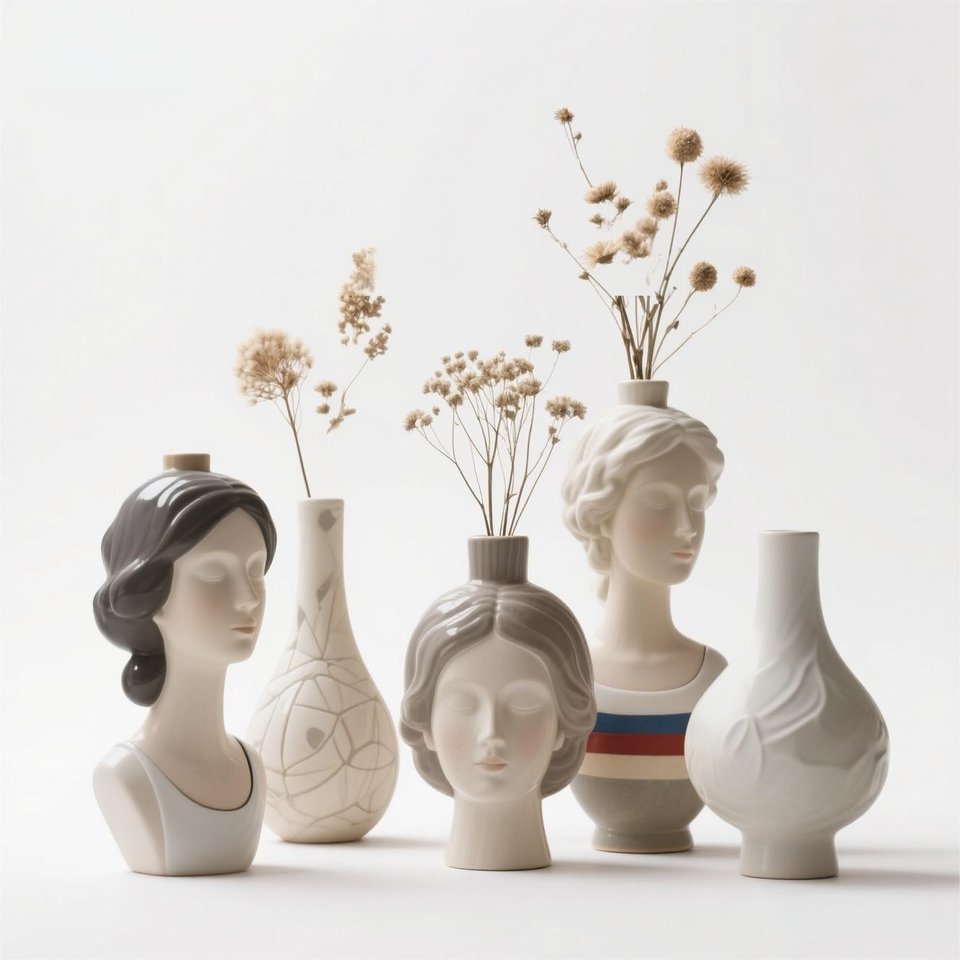 Vase en céramique nordique tchèque. Design personnalisé en 3D peint à la main, un récipient minimaliste alliant la simplicité scandinave et des motifs tchèques