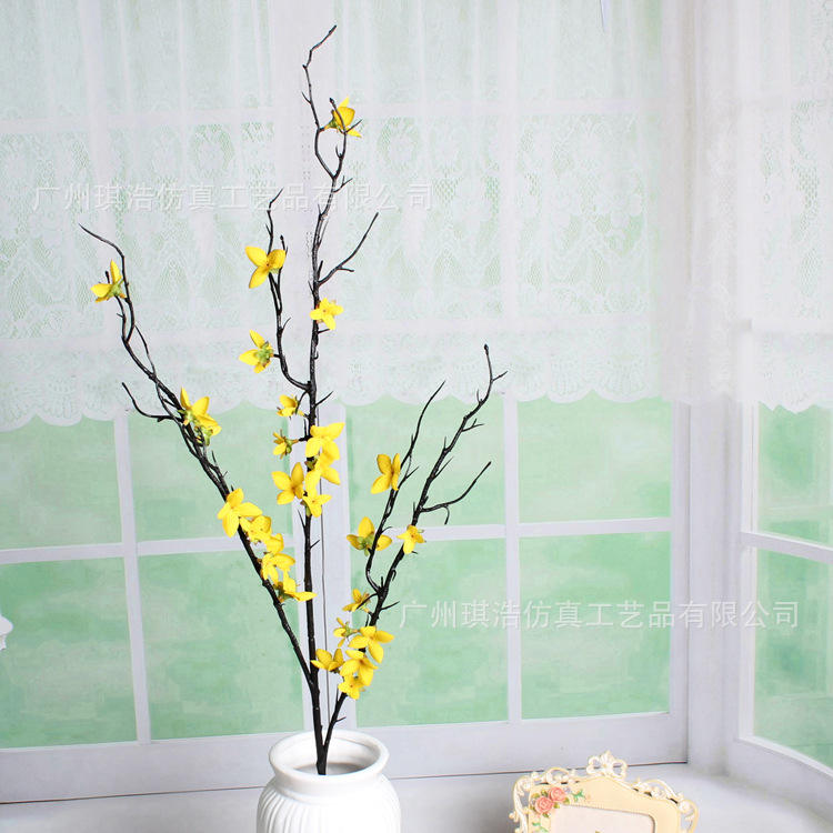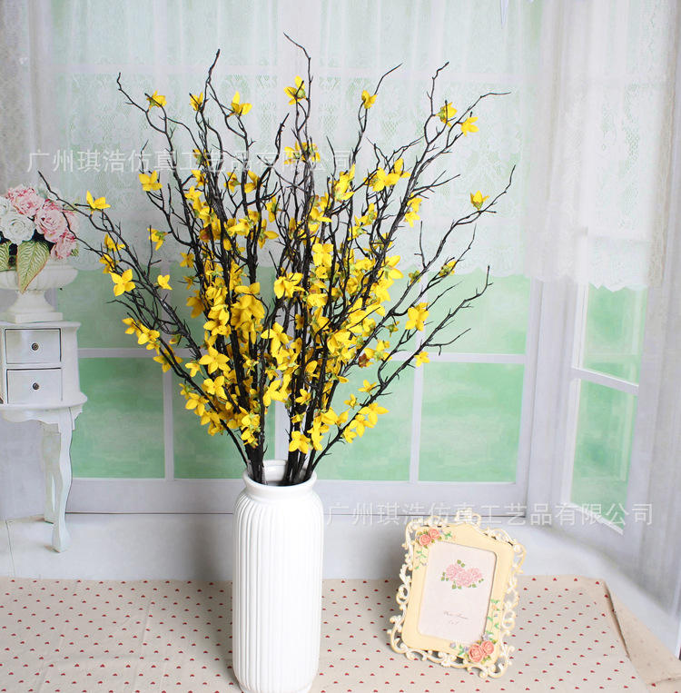 D-CB009 jaune printemps fleur Vernal Artificielle jaune hiver jasmin fleurs jasminum nudiflorum fleur pour pot maison de mariage