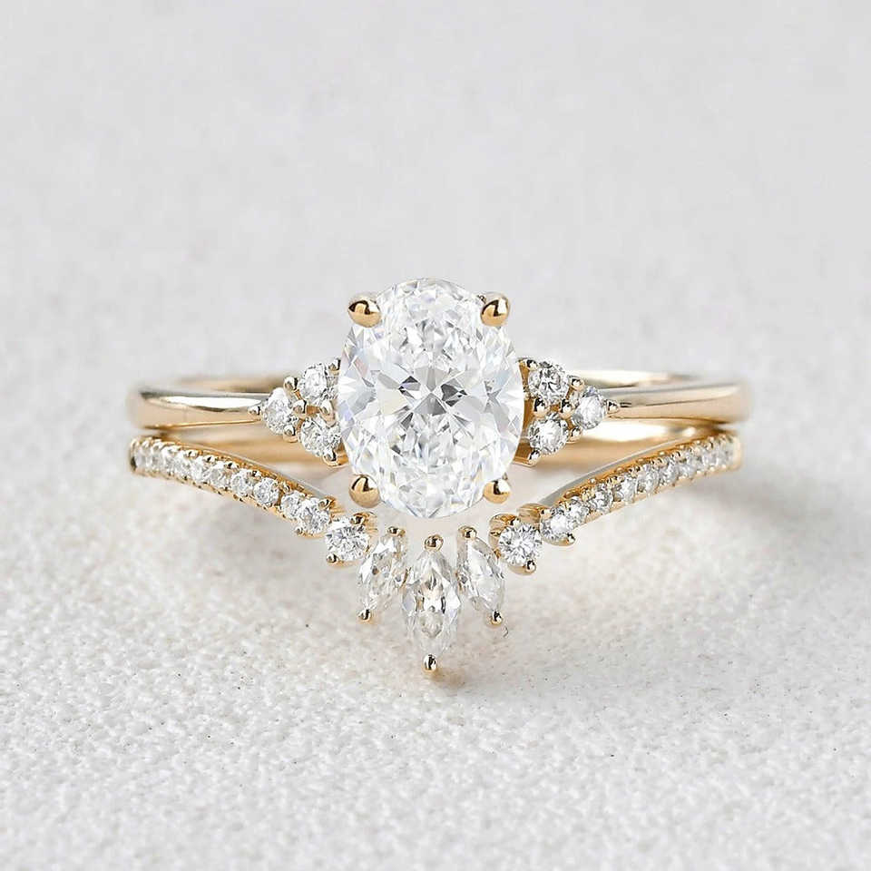 Ensemble de bagues de mariage en or massif 14 carats avec sept pierres de diamant de couleur D, style vintage, taille ronde brillante, pour les futures mariées, fête, anniversaire