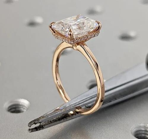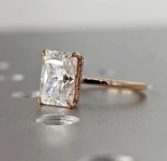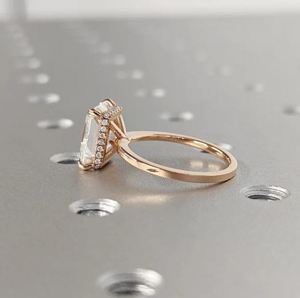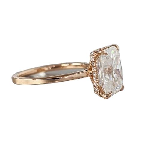 D Couleur Radiant Cut Lab Grown Diamond Hidden Halo Bague de mariage Solitaire Bague en or rose 14 K pour femme Cadeau pour elle